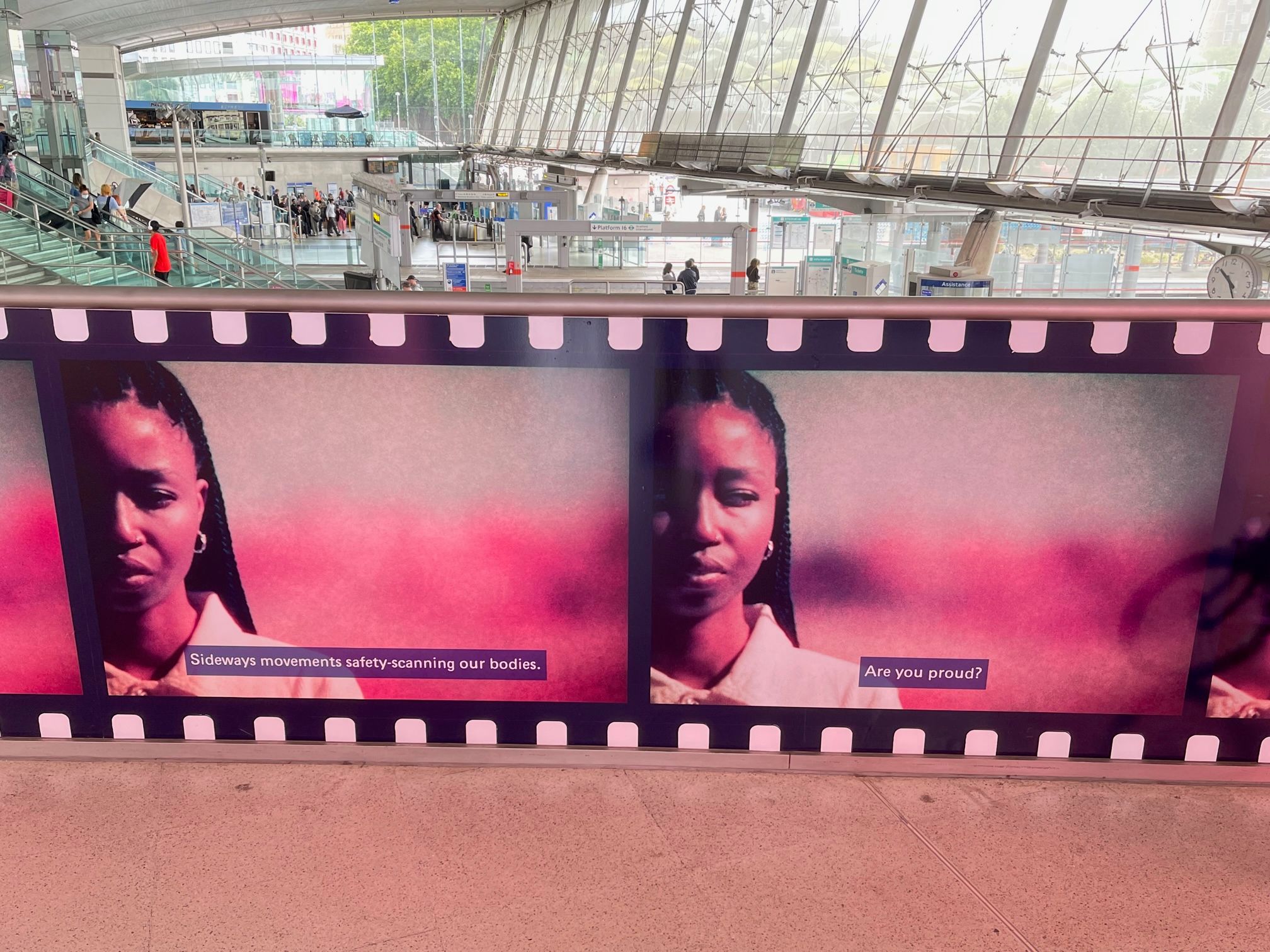 The artist also spoke with Tube staff—asking questions such as how race and dress affects the way that they, or the people they observe, move around the Underground. These observations fed into the “consideration of surveillance… intertwined with the history of Black life”.
