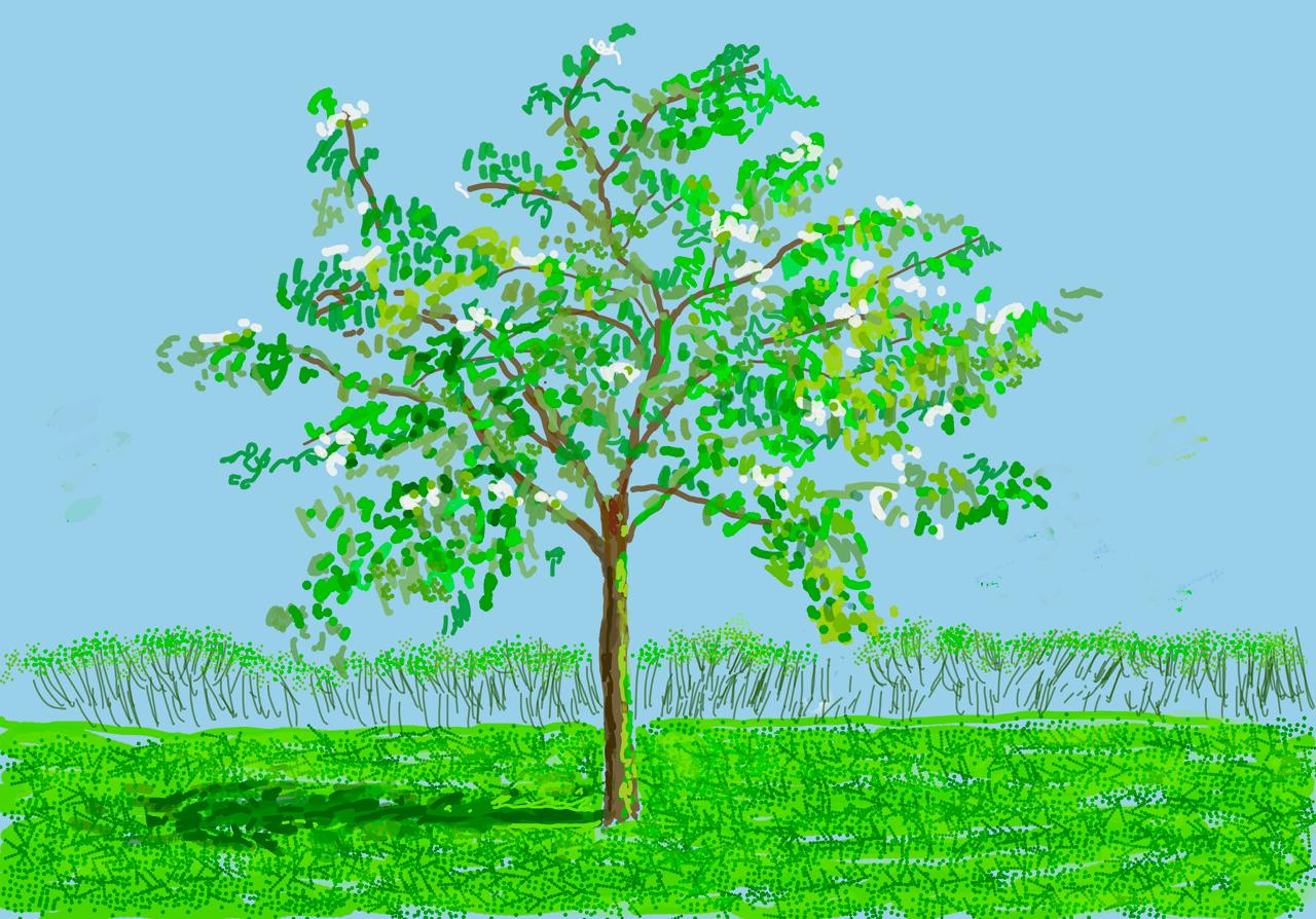 Hockney’s 9th April 2020, No. 2, reflecting his admiration for Van Gogh’s blossom paintings
