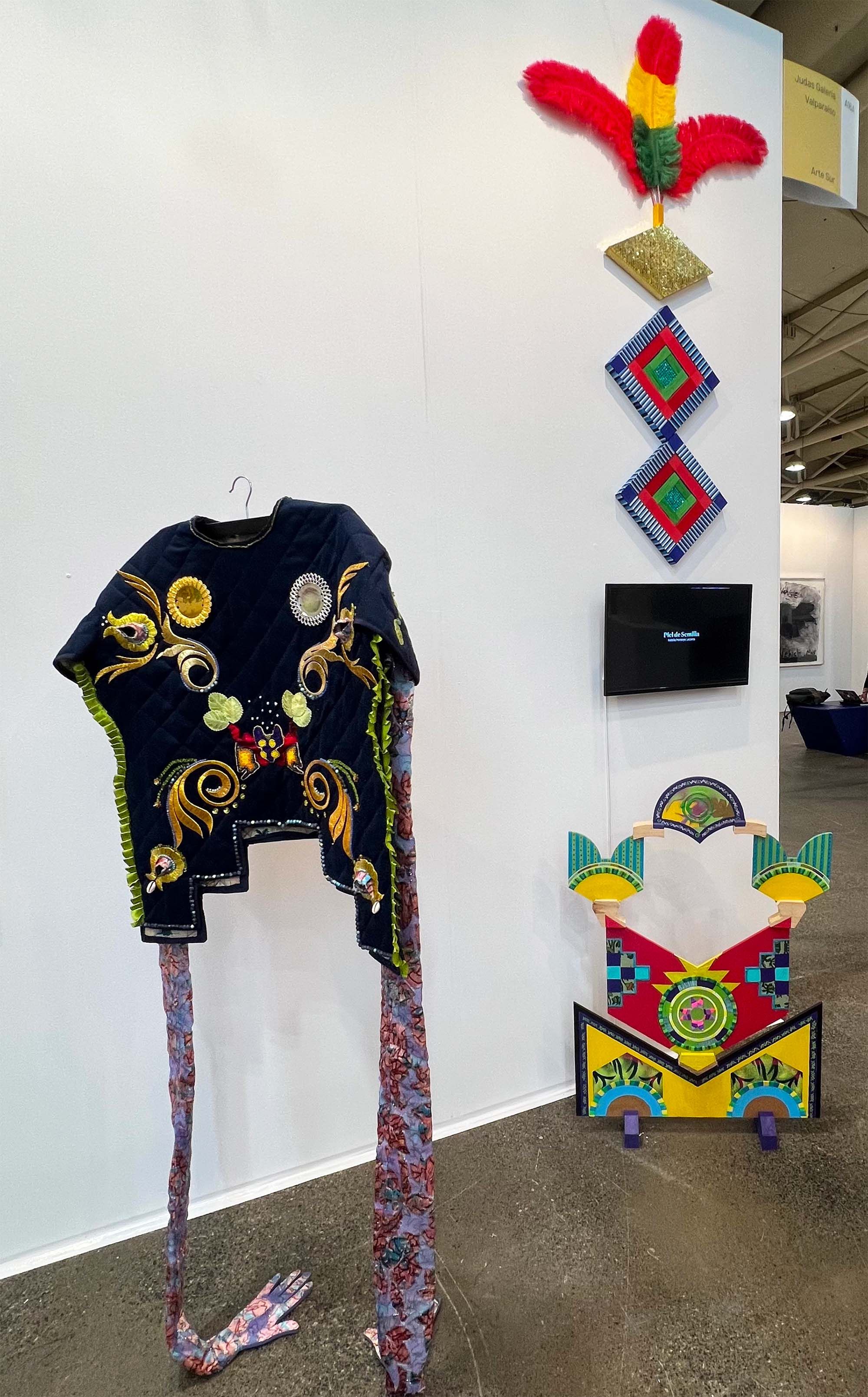Indigenous artists figure prominently in Arte Sur, the fair’s new Latin American section curated by Mexico-based gallerist Karen Huber. Among them is Natalia Montoya (showing with the Chilean gallery Judas), an Aymara artist from the Andes who uses painting, performance, textiles and contemporary totems to explore her Afro-Indigenous identity while addressing pressing social issues. Also featured are the abstract works on paper by Sheroanawe Hakihiiwe, a Yanomami artist from the Venezuelan Amazon who is showing with the New York-based gallery Proxyco, which reported a sale of one of Hakihiiwe’s pieces early on during the fair.