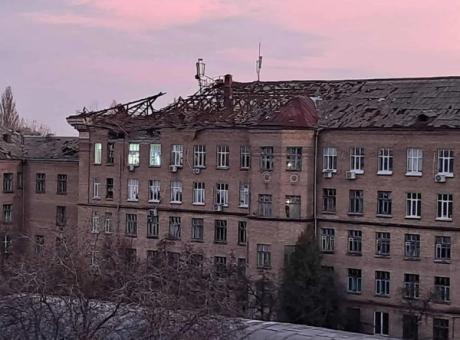 “The drone fell on the roof on the other side of the building,” Nyrkova said. “We don’t know now if the institute managers can fix it. Because it costs much more than our windows.”