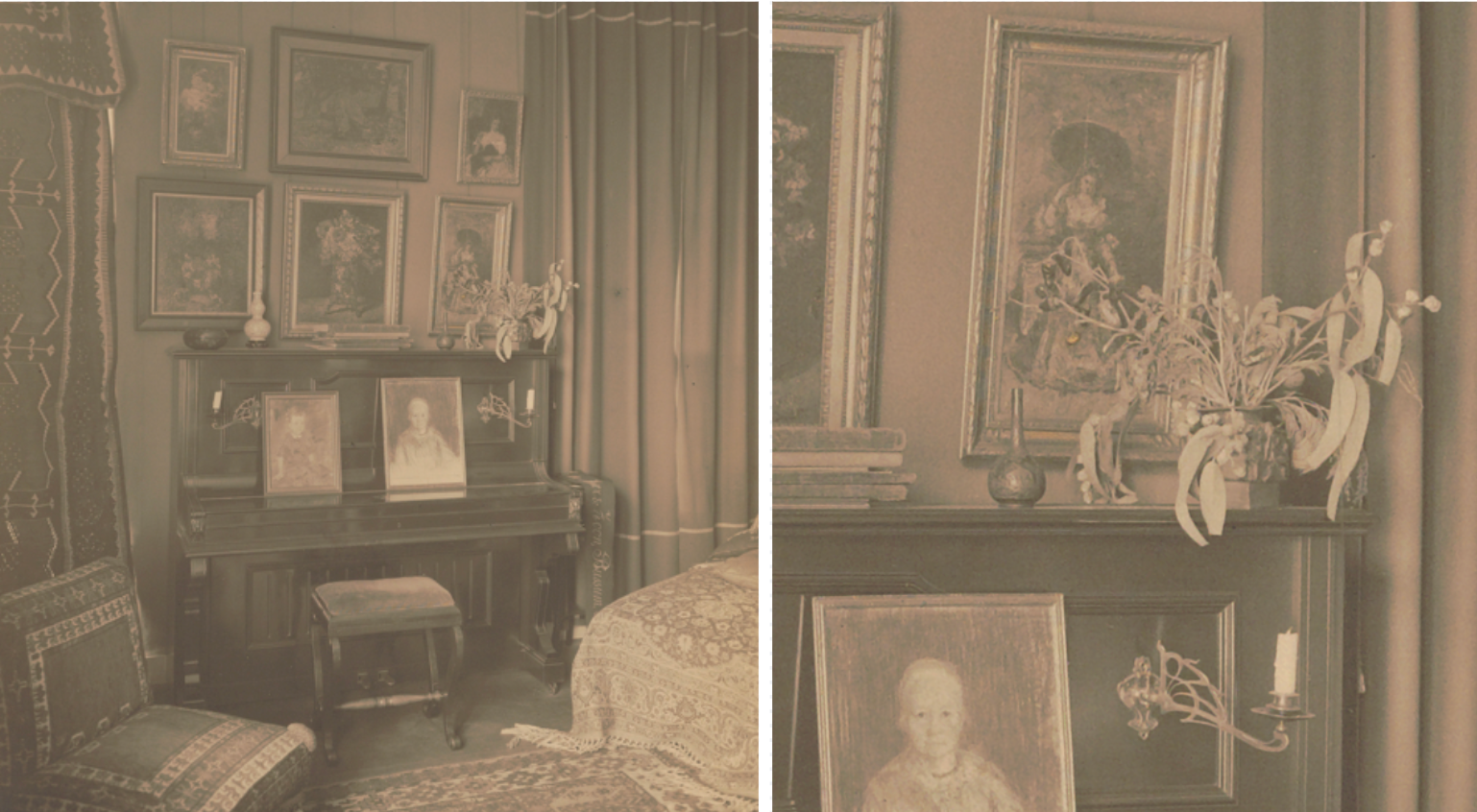 Jo had died in September 1925 and the apartment was about to be cleared. Above the piano’s closed keyboard is a painting of her (next to a portrait of her young grandson, Theodoor), presumably placed there in memory on the instrument that she would never play again.