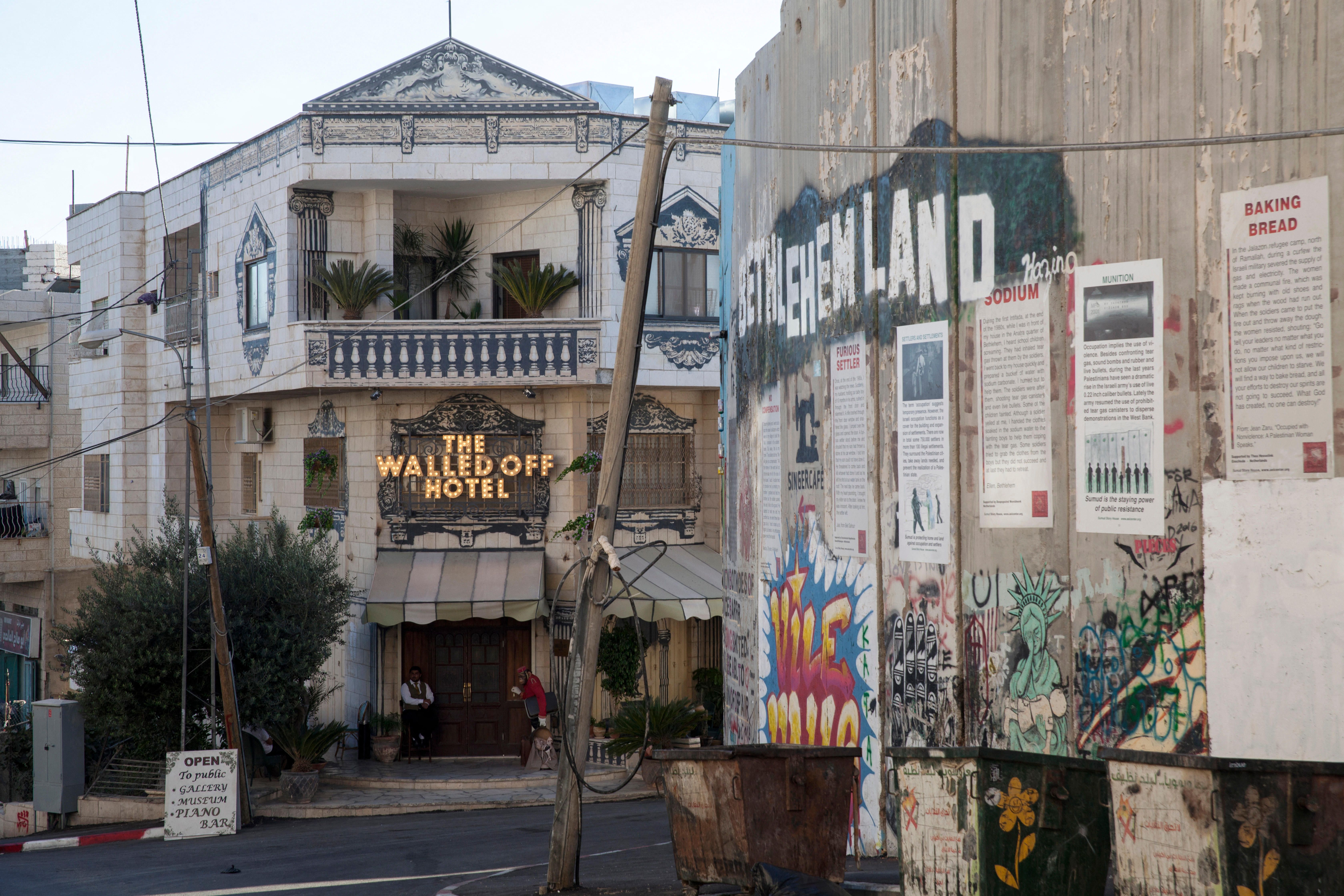 In 2004, the United Nations declared Israel’s 425-mile-long wall illegal. Banksy has said the barrier “essentially turns Palestine into the world’s largest open prison”. On the hotel’s website, the wall is described as “either a vital security measure or an instrument of apartheid”— “depending on who you talk to”.